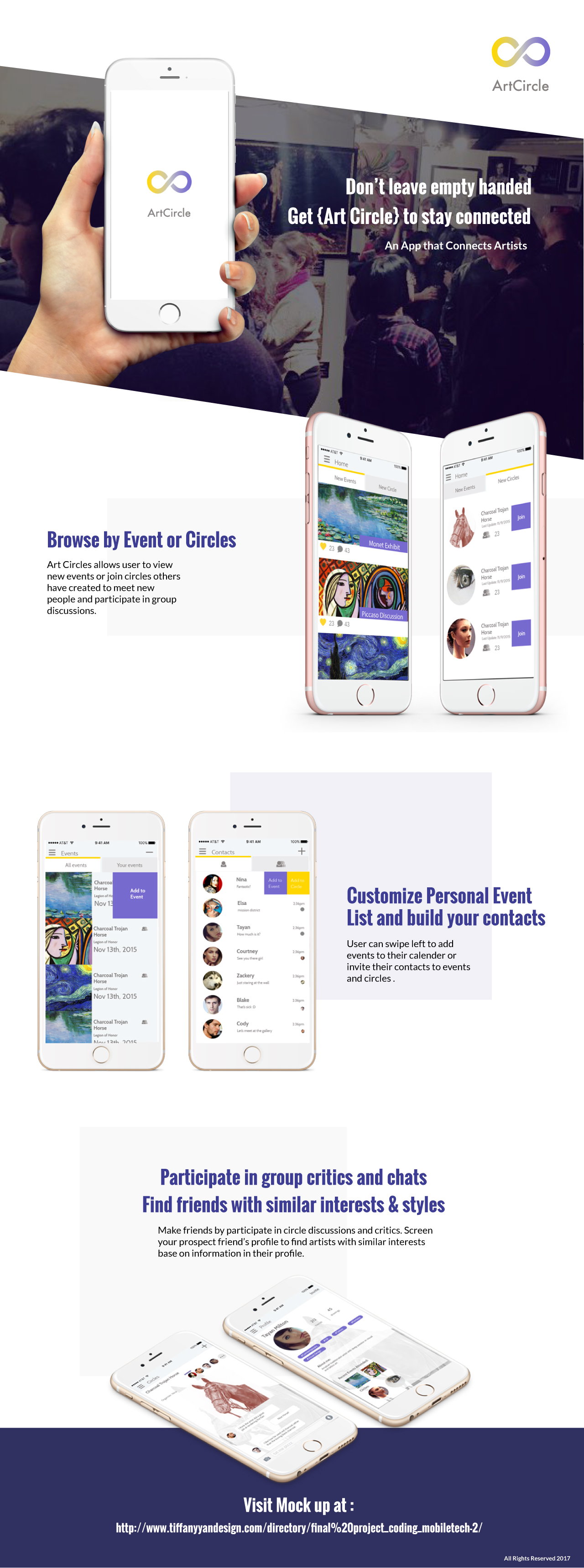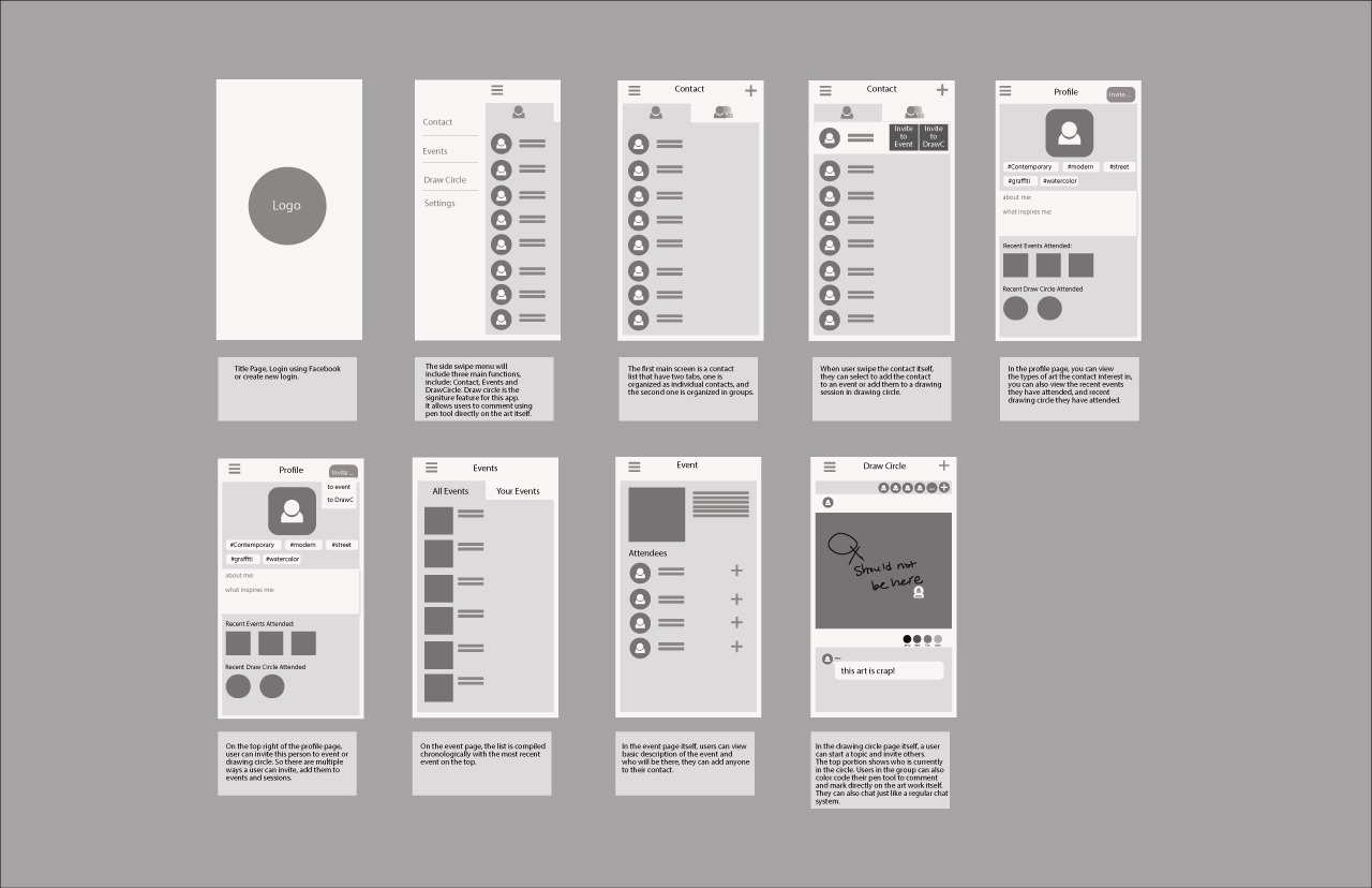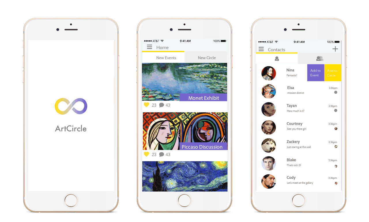 Art Circle is a communication app for artists and designers to share, collaborate and engage in group projects. The app allows users to save their artworks, showcase their work, and connected artists in the community and encourages artist to be more active in community based setting.